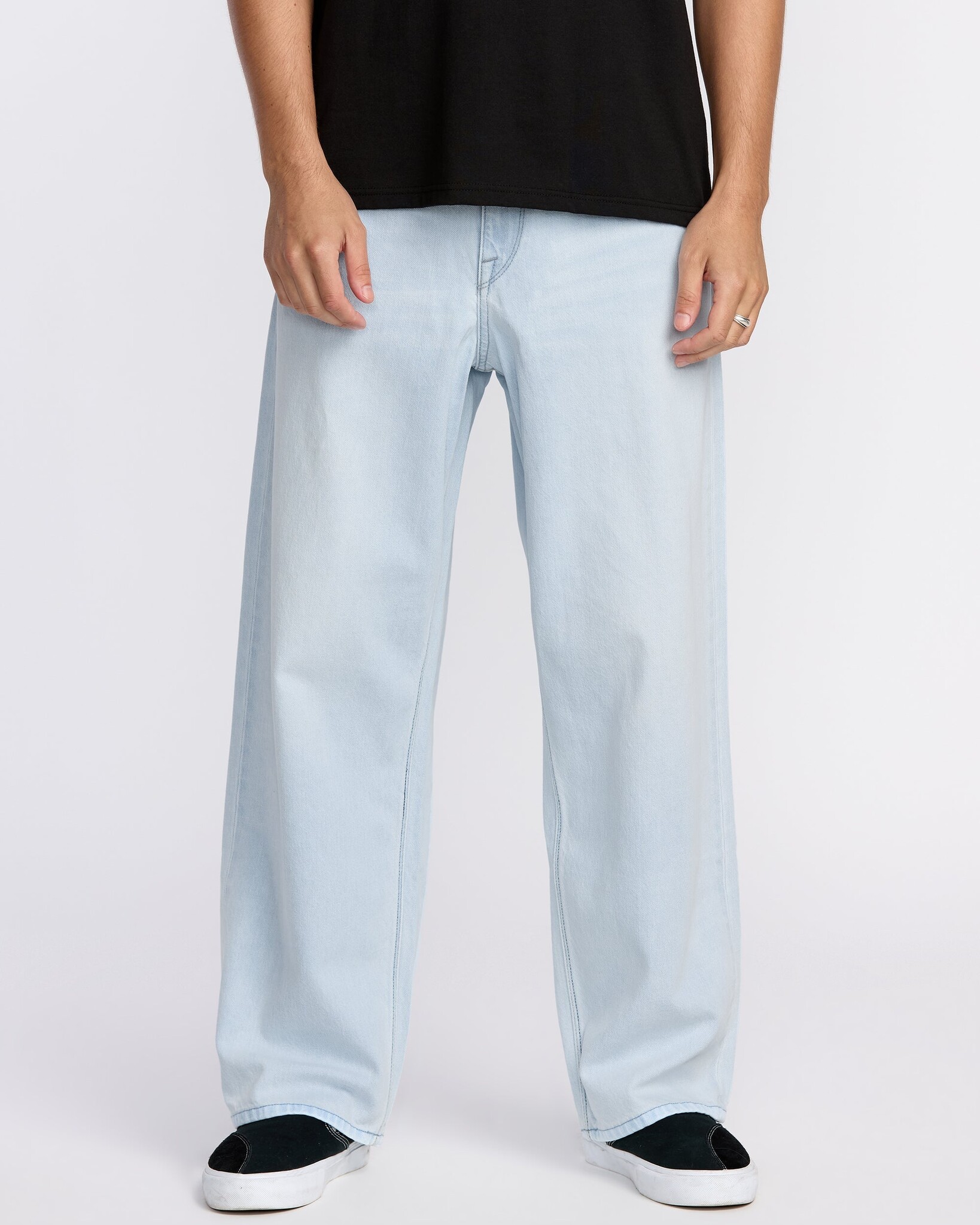 Billow Denim brings the airflow. Loose fit, low rise, 19-inch leg opening, 30-inch inseam (size 32). Heavy-washed Blue Fog with thigh sanding for that lived-in look. Finished with signature Volcom Brand Jeans details plus the Water Aware wash to cut water use without killing the vibe.