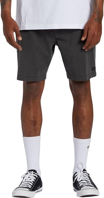 Versatile hybrid shorts with 4-way stretch cotton poly fabric move seamlessly from waves to street. Garment dyed with DWR, they feature a relaxed chino style, zipper pockets and button fly - perfect for active guys seeking modern amphibious style. Featured here in the Washed Black colorway.