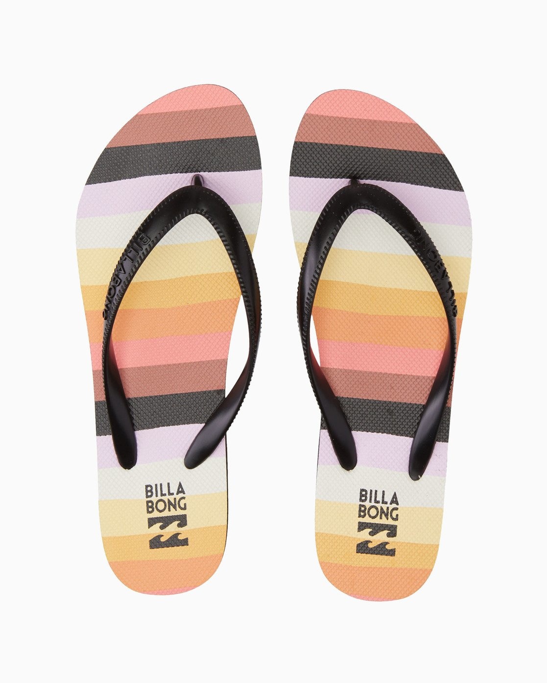 Leave your signature footprints in the sand with the Dama Jr flip flops. The girls printed sandals features a classic 3-point rubber thong construction, standing out with a custom printed footbed and molded strap with a Billabong logo.