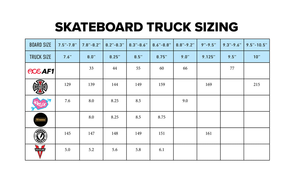 These trucks are 55mm high, they work super well with wheels up to 56mm. If you want to go bigger or ride your trucks loose, a riser pad in there will add clearance and you’ll be good to go.