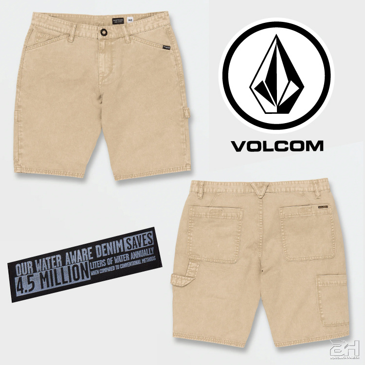 Large back patch pockets with velcro closures at top of pocket, Left hanger loop and right lower back thigh utility pocket, Volcom Brand signature details and branding