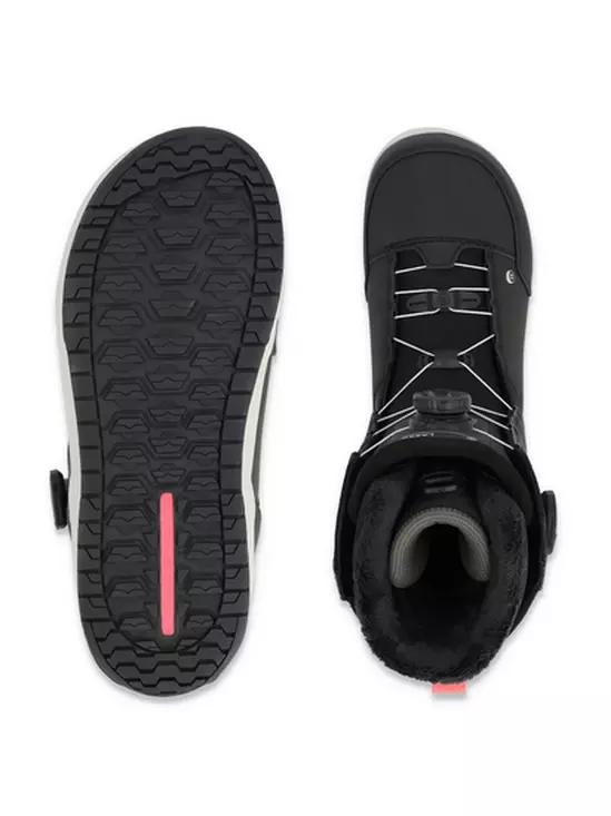 This RIDE specific technology offers a secure fit in the ankle zone and eliminates the need for a traditional harness. The tongue integrated Boa® guides provide total tongue closure and next level heel hold without the potential pressure points. Depending on the model, Tongue Tied™ is paired with traditional lace, Boa® Focus, or Boa® Coiler Closure Systems.