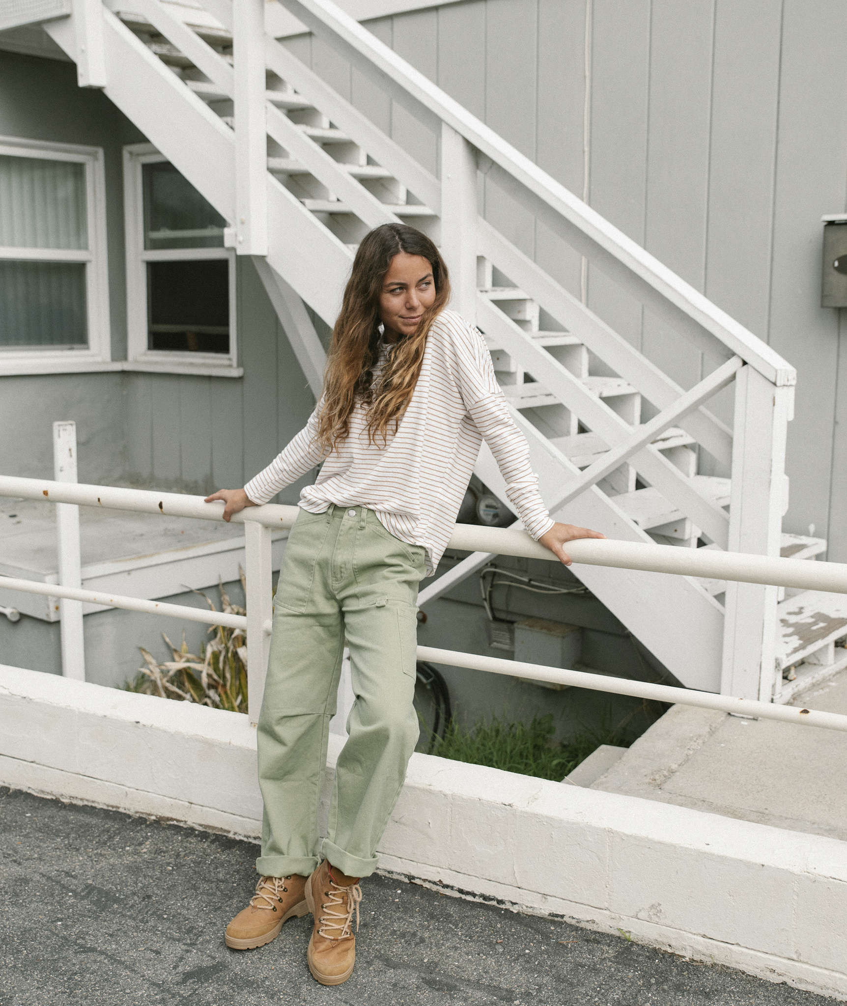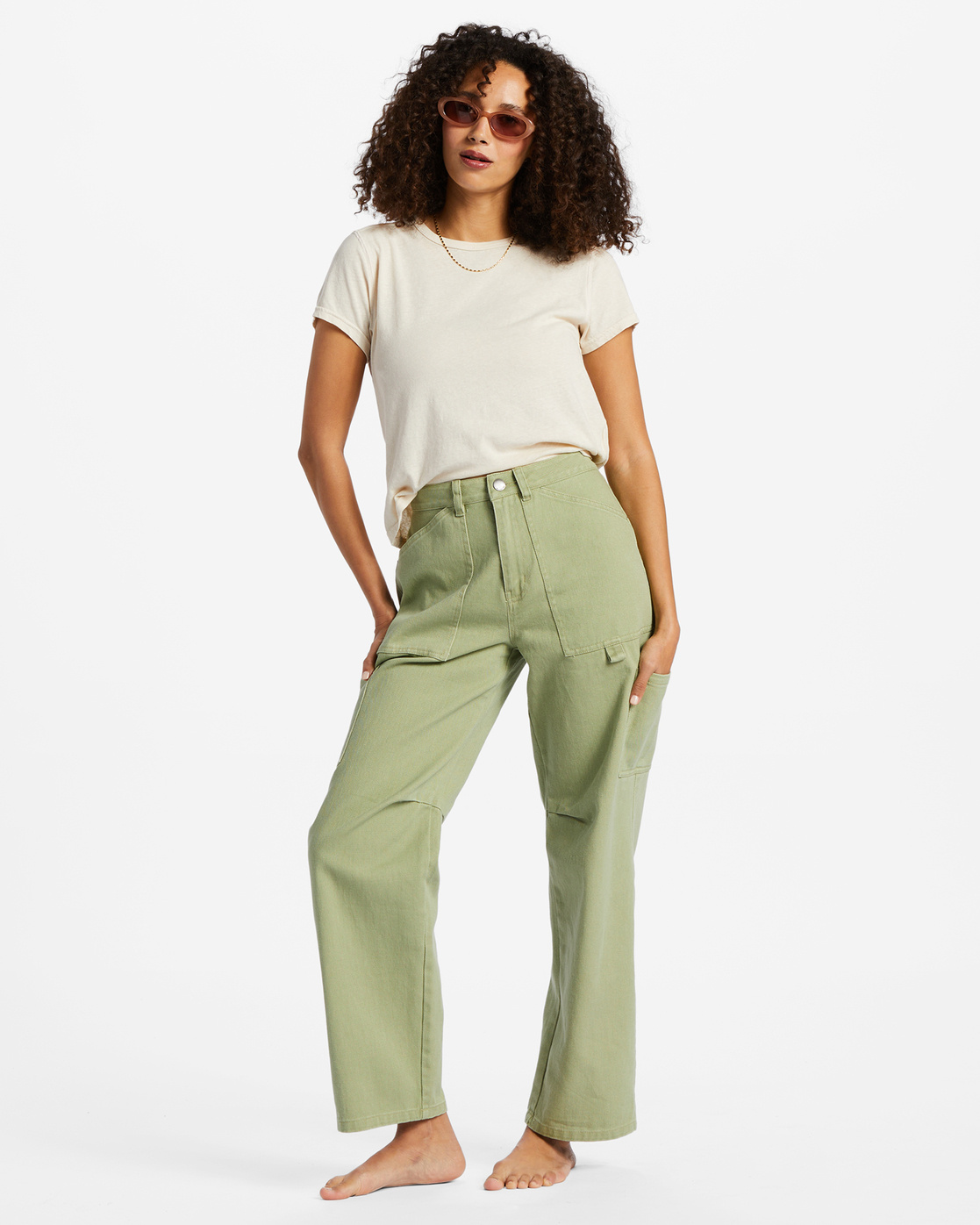 Experience comfort and style with our Billabong Leia Cargo Pants. Crafted from cotton denim fabric in a boyfriend fit, these mid-rise pants feature a flat front waistband, button closure and cargo pockets for added convenience. Finished with a recycled nylon patch for branding.