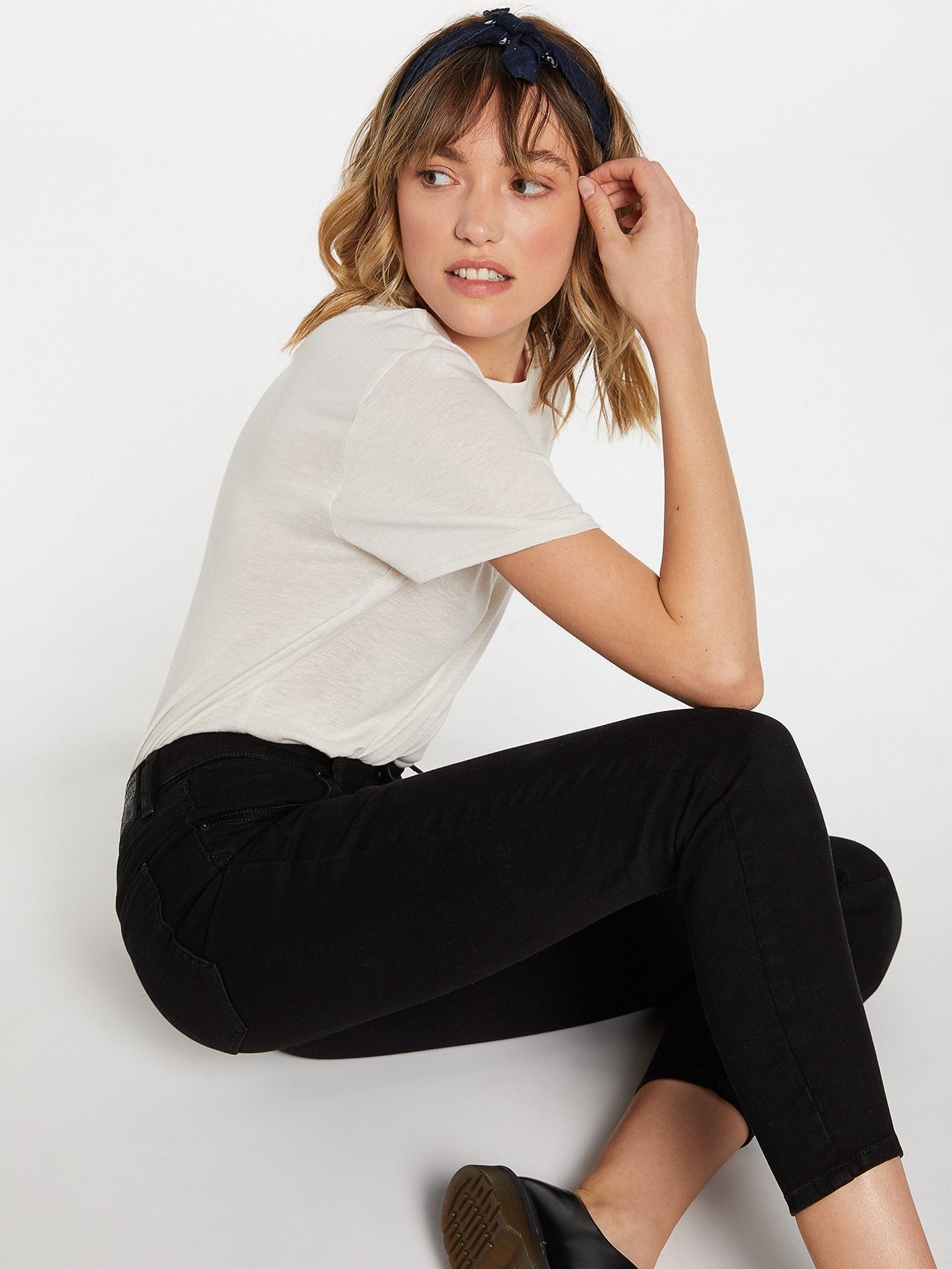A high-rise fit with a cropped cut, the Liberator High Rise is a slimming fit. This stretchy style features a zipper fly and is available in two lengths.