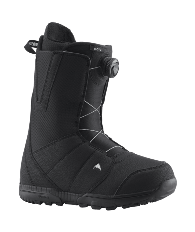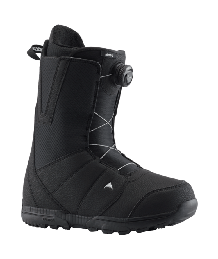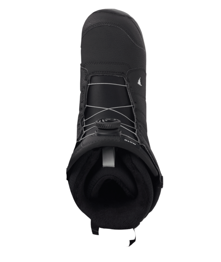 men's Burton Moto Snowboard Boots have it all, so you can get after it all. Speed Zone lacing offers hassle-free on and off for quick transitions from lodge to lift line. Add a broken-in feel right out of the box plus a featherweight cushioned outsole to absorb every bump and landing, and you've got boots you can happily wear all day long. Heat-reflective liner tech defies cold weather by radiating body warmth back at you. Soft and forgiving, the Moto's proven comfort lets you focus on your moves and skills as you explore the entire mountain.