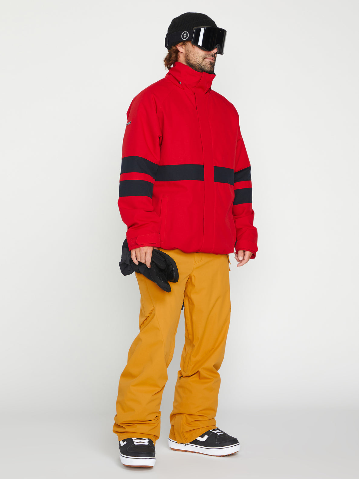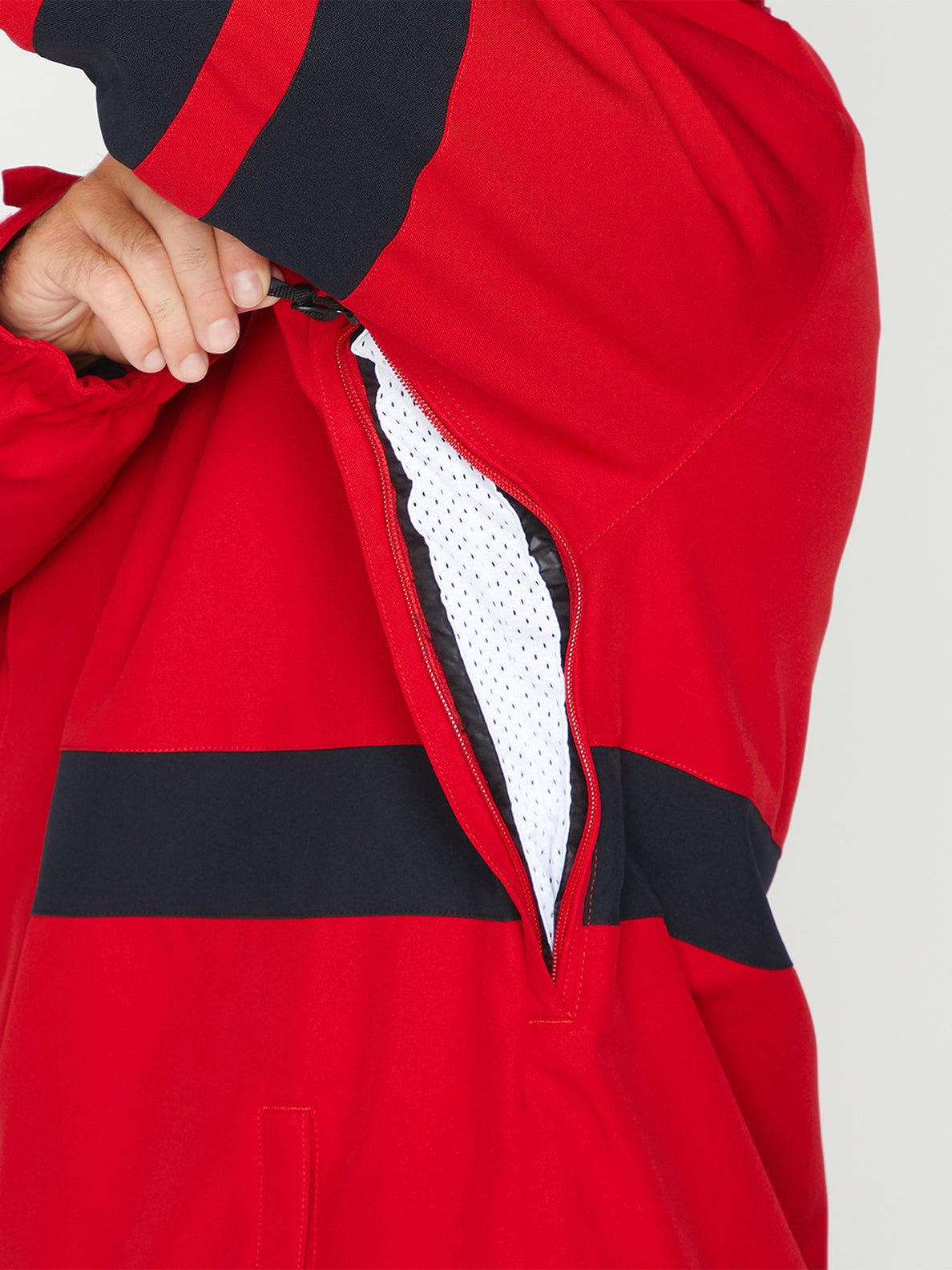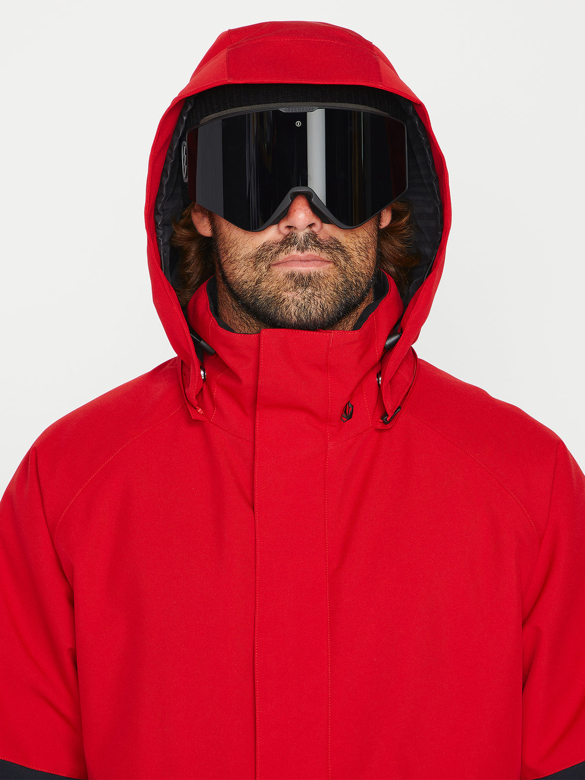 This insulated snowboard and ski jacket made with Repreve@ recycled fiber made from recycled plastic bottles to create a more sustainable fabric that keeps you dry. With 15K V-Science 2-Layer stretch fabric and a slew of features including a removable hinged hood, two-way cuffs, and Zip Tech® jacket-to-pant interface, this jacket has earned its stripes.