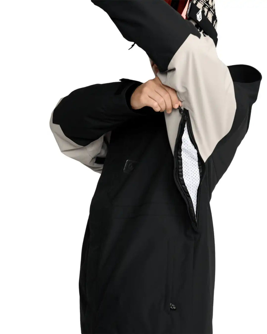 The men's Volcom Primary Insulated Jacket features a durable water repellent finish (DWR) and critically taped seams for enhanced waterproofing. With a 10k/10k waterproof-breathability rating, this ski and snowboard jacket ensures you stay dry and comfortable in various weather conditions. The smooth taffeta lining provides an extra layer of comfort, while the toggle cinch hood and mesh-lined zip vents offer customizable coverage and ventilation. The Super Suede chin guard protects against chafing, and the V-Science two-way cuff system allows for easy adjustment. The Volcom Primary Jacket also features an adjustable powder skirt, a pocket-access hem cinch, and brushed tricot lined handwarmer pockets.