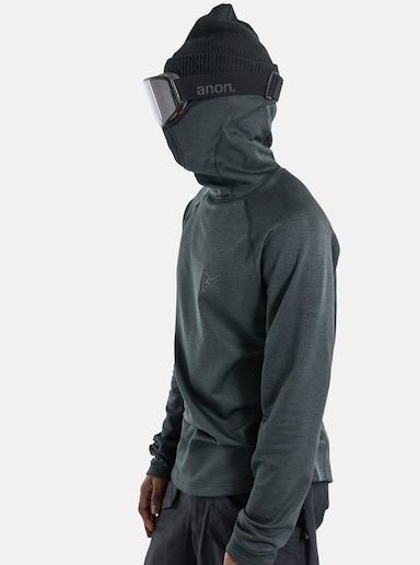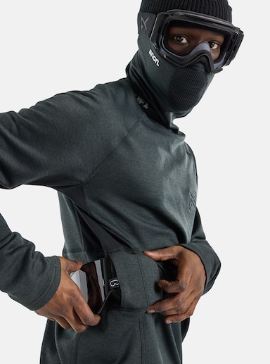 The Anon MFI® Midweight Long Sleeve combines the warmth of a pullover mid layer with a built-in neck warmer and face mask that magnetically connect to Anon MFI goggles, creating a seamless buffer from cold, windy conditions.