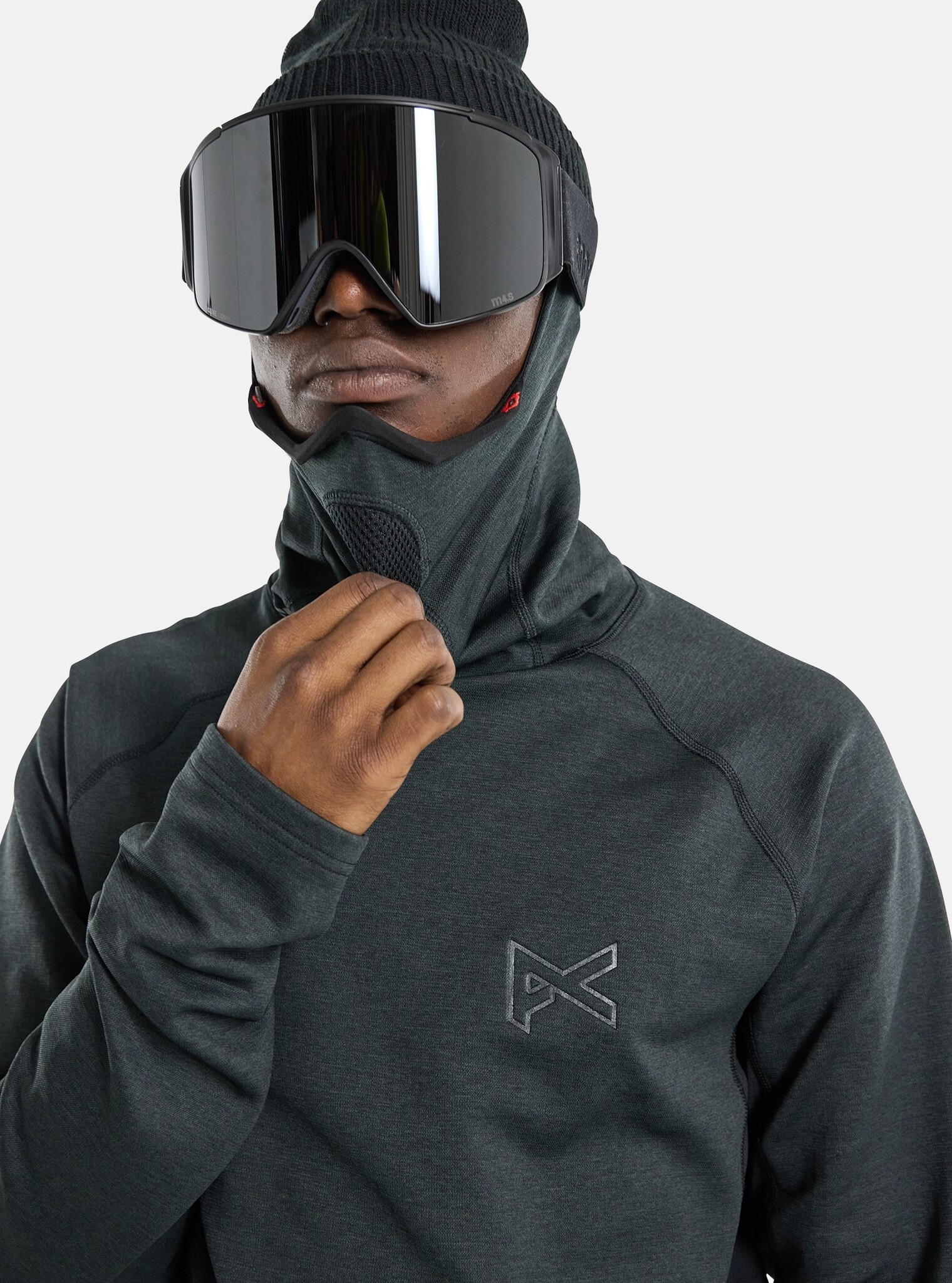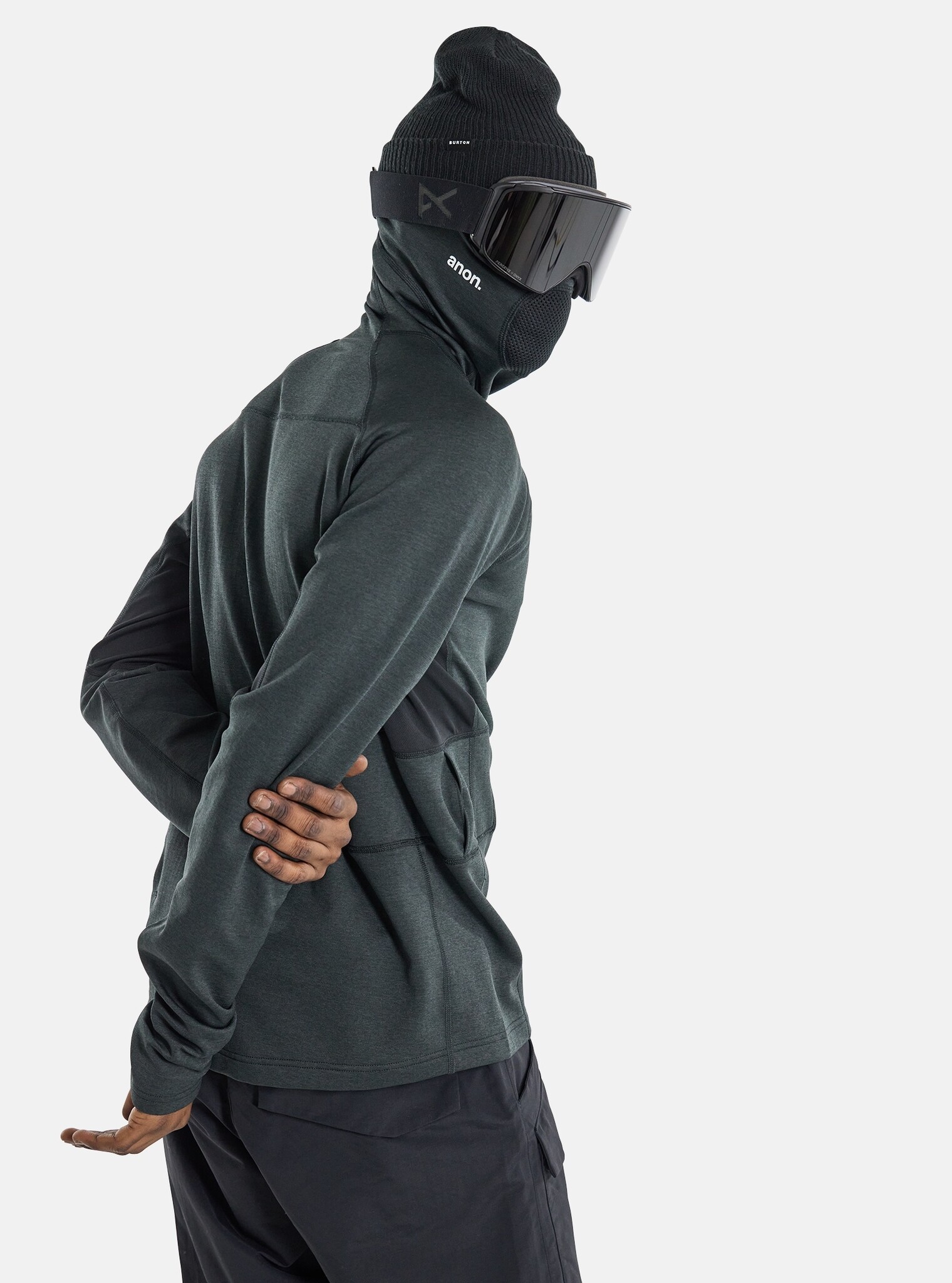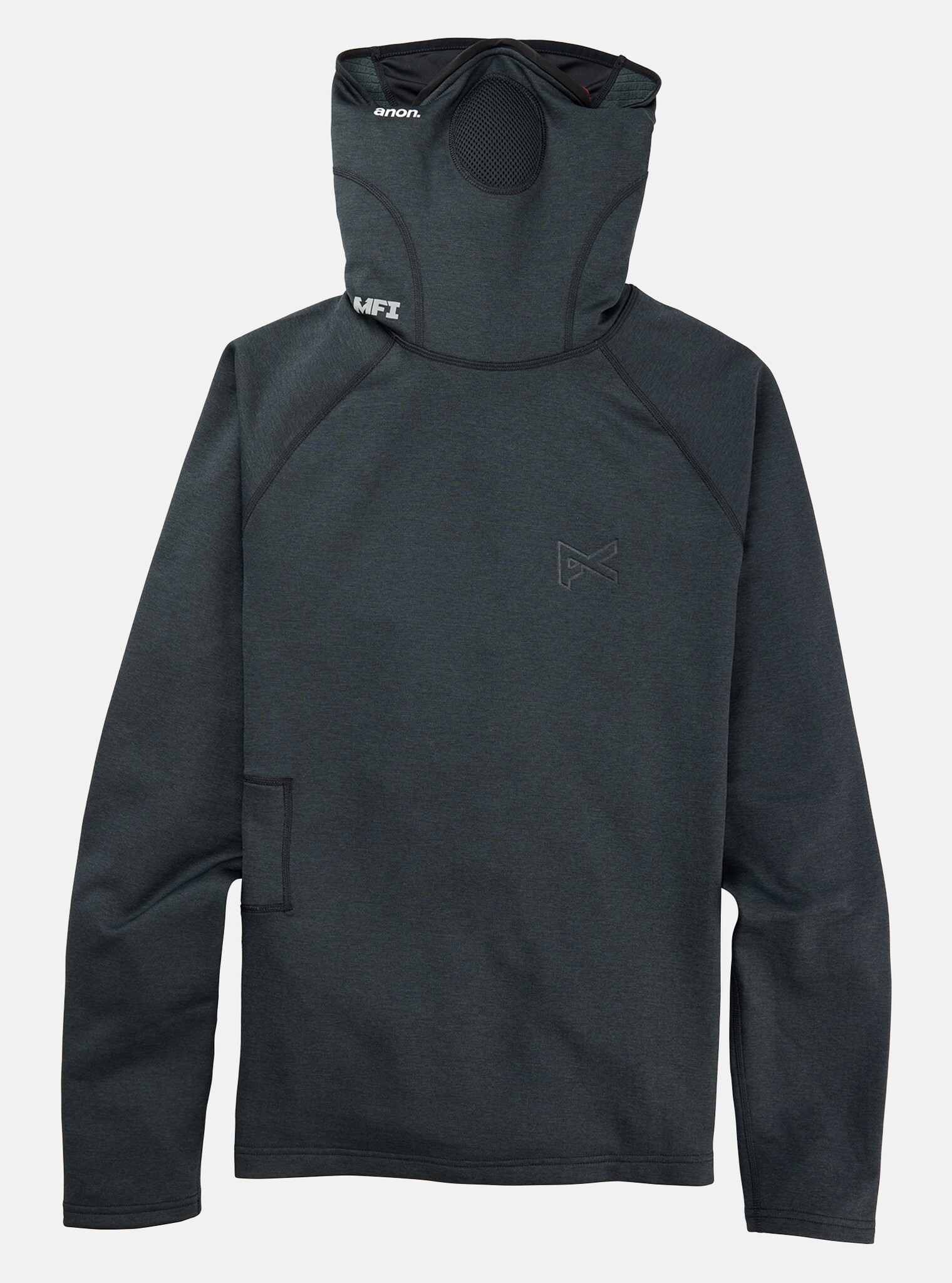 The Anon MFI® Midweight Long Sleeve combines the warmth of a pullover mid layer with a built-in neck warmer and face mask that magnetically connect to Anon MFI goggles, creating a seamless buffer from cold, windy conditions.