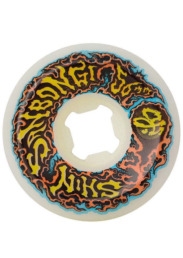 OJ Wheels Shin Sanbongi 2 Pro Mini Combo with art by Mako @makoyamaki on new Original 99a high performance urethane. Mini Combo is an asymmetrical shape featuring a rounded back and a conical front with a wider riding surface for increased lock-in on grinds and control on all surfaces.