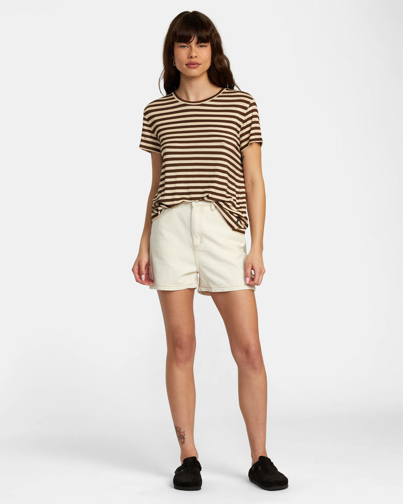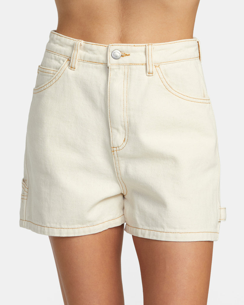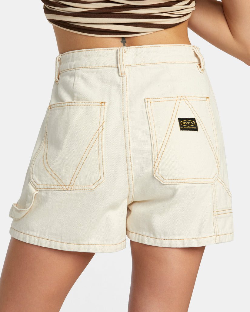 Revamp your wardrobe with RVCA Women's Dayshift Denim Shorts. Crafted from eco-conscious cotton denim fabric, these regular-fit shorts feature a zip fly, fixed waist, and button closure. Adding a hammer loop, these shorts take a modern twist on timeless workwear style.