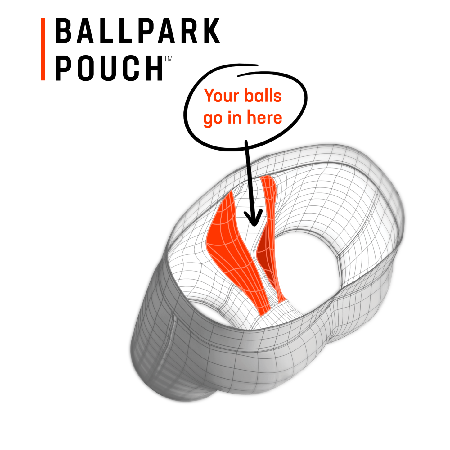 Ballpark Pouch: A 3D hammock-shaped pouch designed to keep everything in place. Thanks to mesh panels and Flat Out Seams™, the BallPark Pouch™ prevents skin-against-skin friction and ensures chafe-free support.