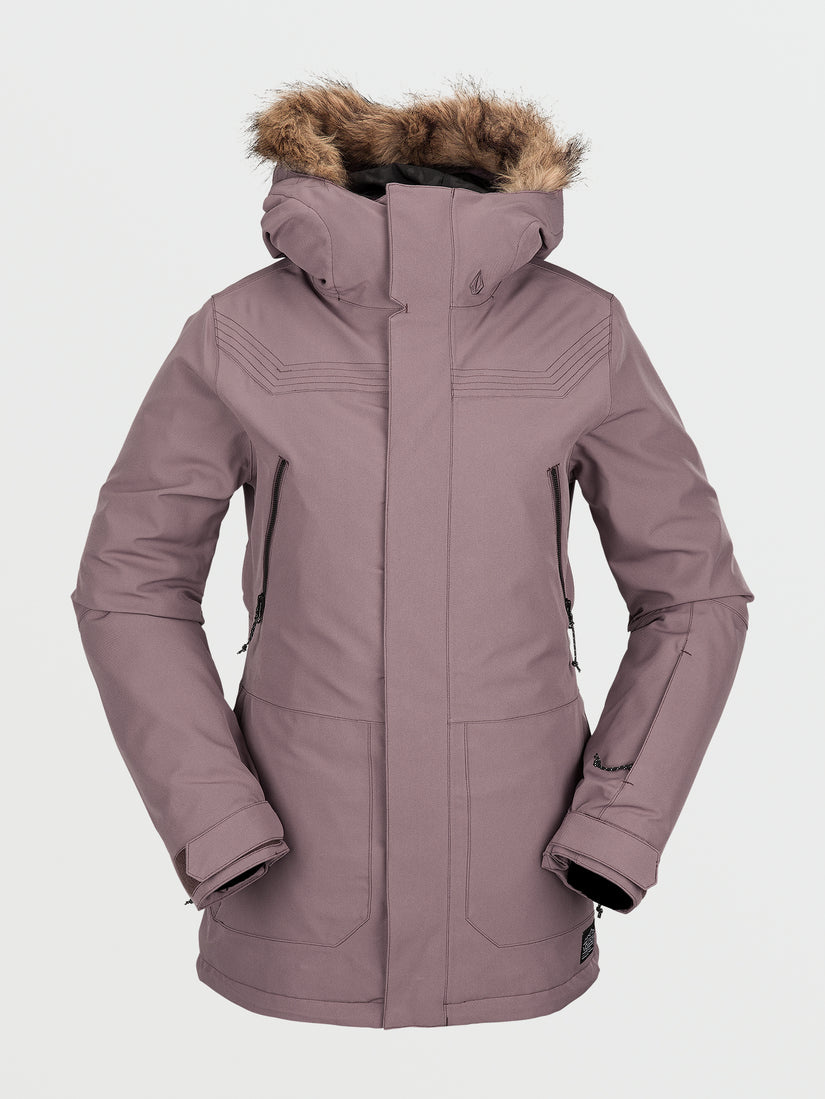 Slim and contoured, the Shadow Insulated jacket takes style to the snow with its longer street-inspired look, our freshest colorways and a cozy removable faux fur trim on the hood. With a 15K stretch outer and V-Science 2-Layer shell this snow jacket takes 60g of insulation, some stone-made style, and combines it with our 2-layer waterproofing. Its stretch REPREVE® outer with non-fluorinated DWR emphasizes sustainability with freedom to move and comes packed with top tech like our patent Zip Tech® interface that connects jackets and pants so you stay truly warm and dry, hidden toggle cinch hood, and Super Suede chin guard.