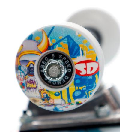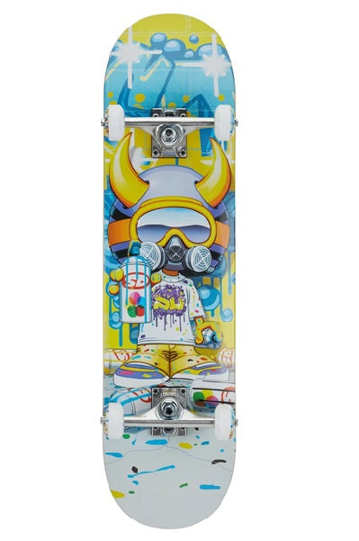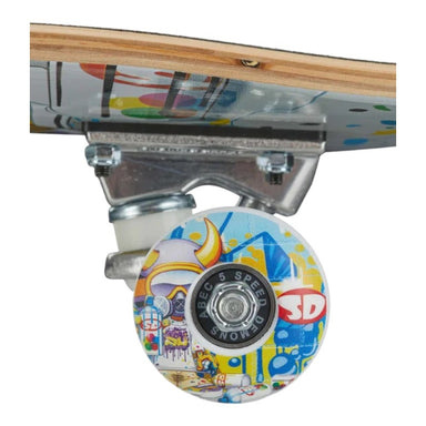 The Speed Demons complete has a double kick-tail and comes fully assembled, so it's ready to skate right away. With a playful graphic, the wheels hang on silver-colored steel, and the wheels are made of hard rubber.