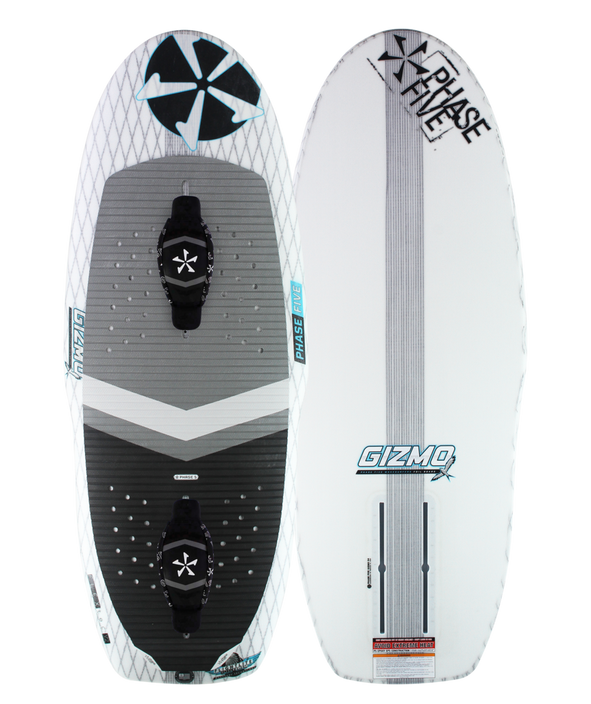 The Gizmo is a foil specific machine designed to surf small wakes and waves. The Gizmo comes equipped with optional foot straps for aggressive riding, or as a training assist for first time foilers. The Phase Five design team made sure the Gizmo can handle whatever is thrown at it. Strong, light, and stiff makes the Gizmo stand out in a crowd and delivers everything foilers of all skill levels will appreciate. The Gizmo utilizes the track mount system on the bottom. This allows an experienced foiler to mount any foil they choose, while being able to micro adjust it for their own setup.