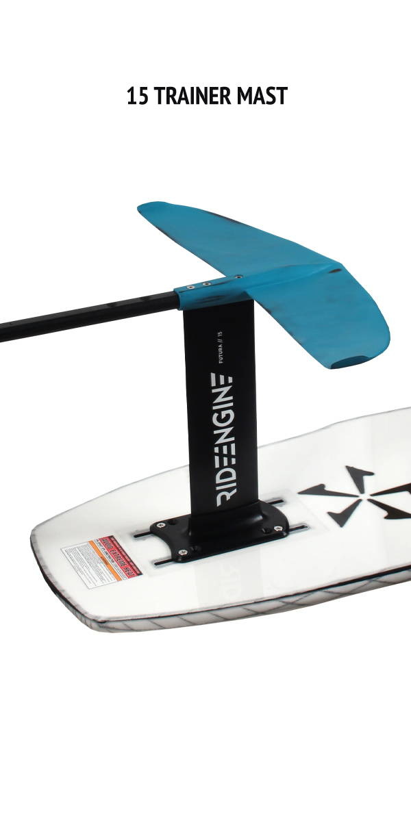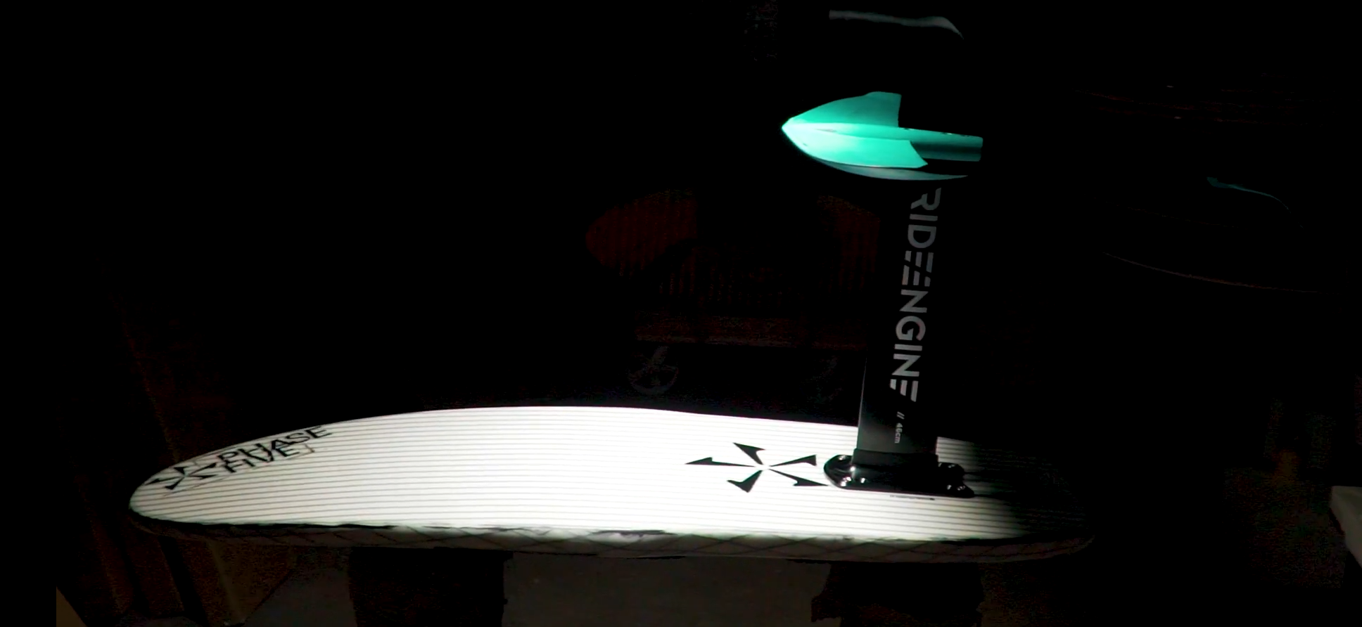 The complete Gizmo Board + Foil package comes with a customized Ride Engine Futura Surf Foil package chosen by Phase Five. The Futura Package includes two mast. A short mast for beginners to learn on, and a long mast to ride after gaining experience. We discovered the short mast is the only way to learn how to foil. Once the rider can hover on the short mast steadily, its time to progress to the long mast for the full experience.
