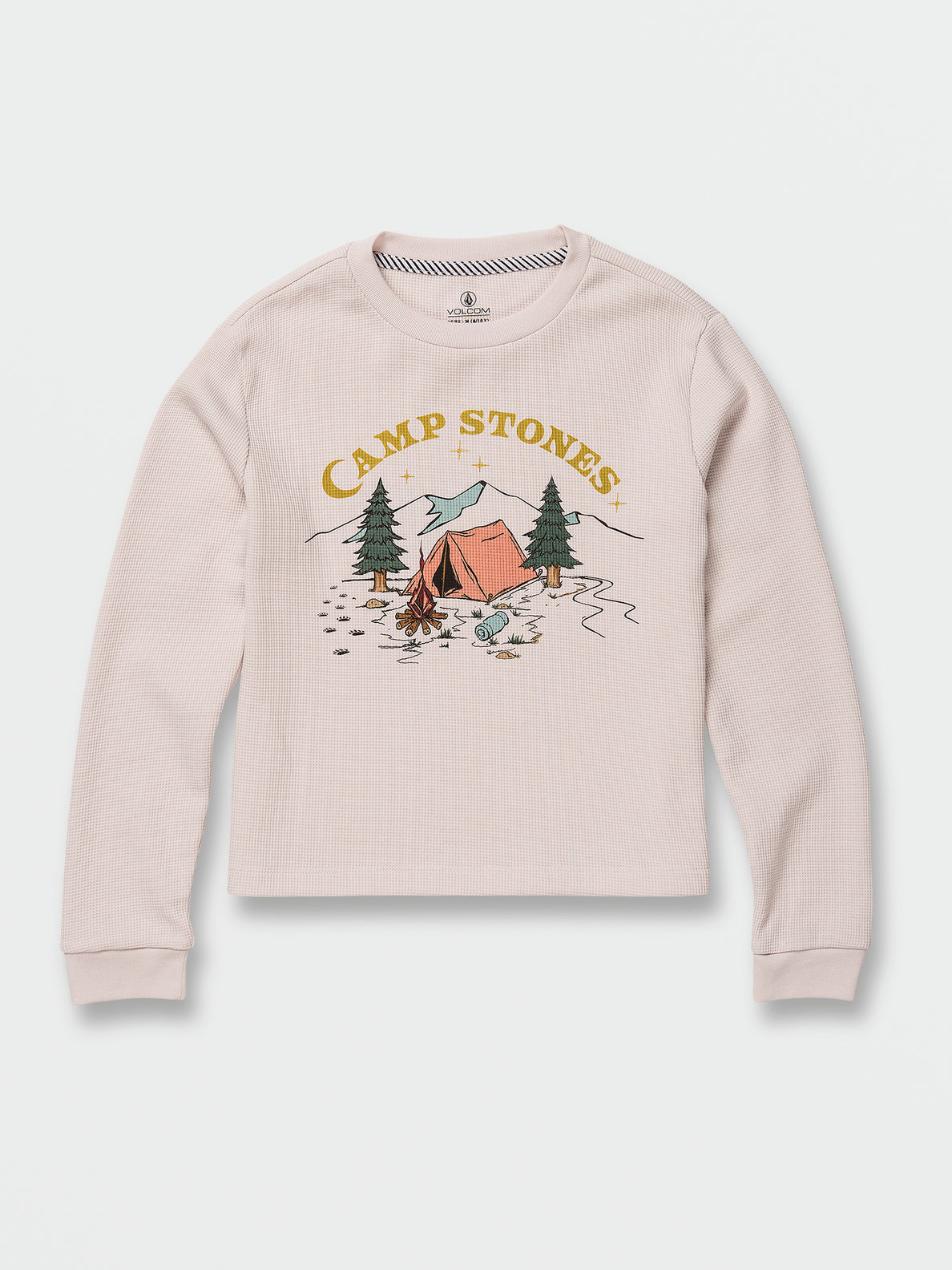 She'll stay warm all season long in this super cute long sleeve thermal. Made from a super soft blend of cotton and polyester in a waffle knit, this tee will be an instant favorite she'll reach for again and again.
