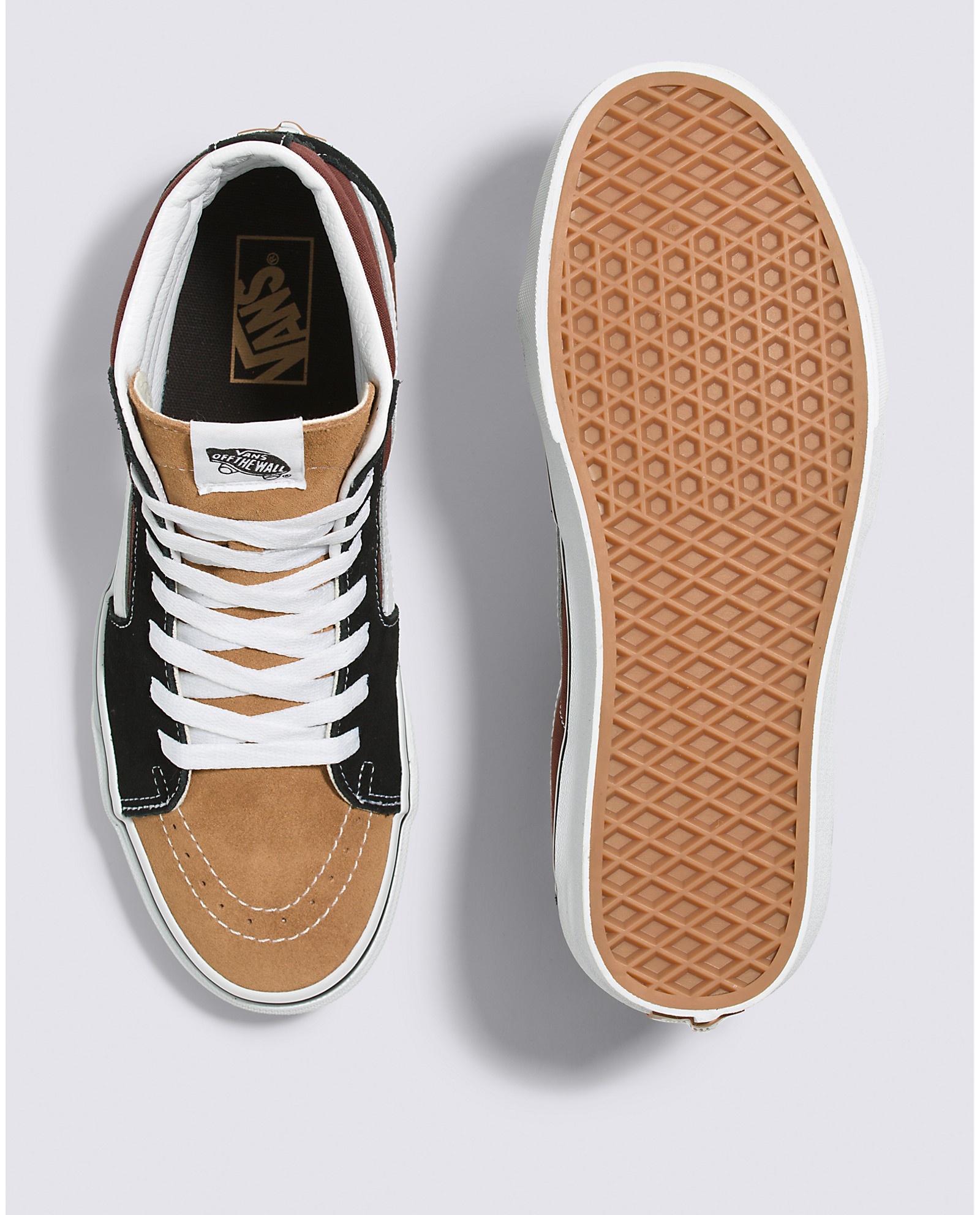 The Sk8-Hi was a game changer as the first high-top skate shoe to break onto the scene. With a padded collar for ankle support and reinforced toe caps, it remains a style like no other. The Sk8-Hi was our second model to showcase the Vans Sidestripe, and its bold design has remained iconic ever since. The innovation of a high-top skate shoe was, and still is, an emblem of Off The Wall culture. The Sk8-Hi Color Block taps into the past with vintage-inspired color blocking.