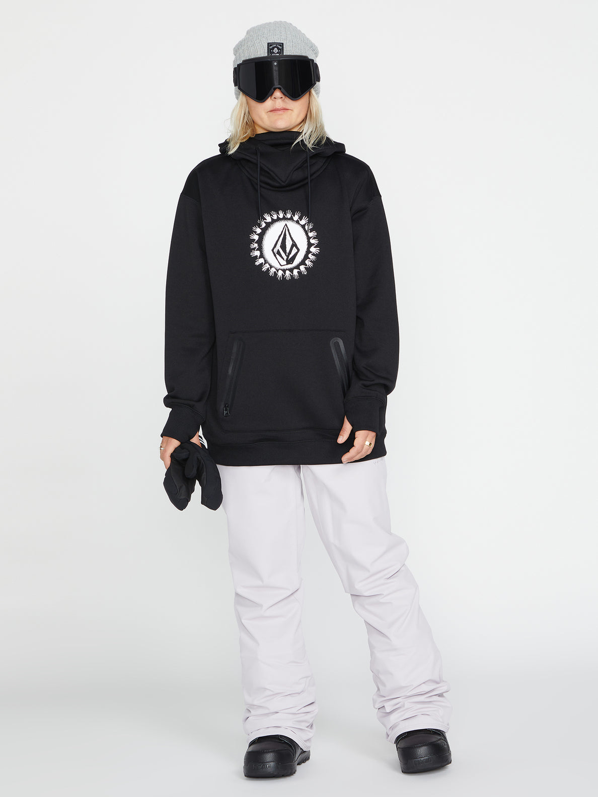 Spring is officially in session with the Spring Shred riding hoody. Warmer days, elusive corn snow and epic après start with this ultra-soft fleece. Made in a breathable hydrophobic fabric that repels light snow and rain, the laid-back boyfriend fit keeps it toasty with an integrated neck warmer, stay-put thumbhole and a little extra length.
